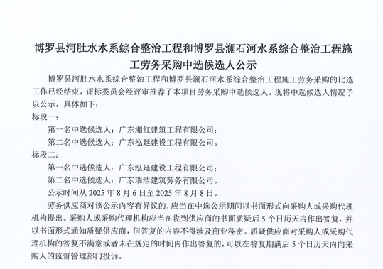 惠州市增江龍門段治理工程施工(一標段)勞務(wù)采購中選候選人公示……